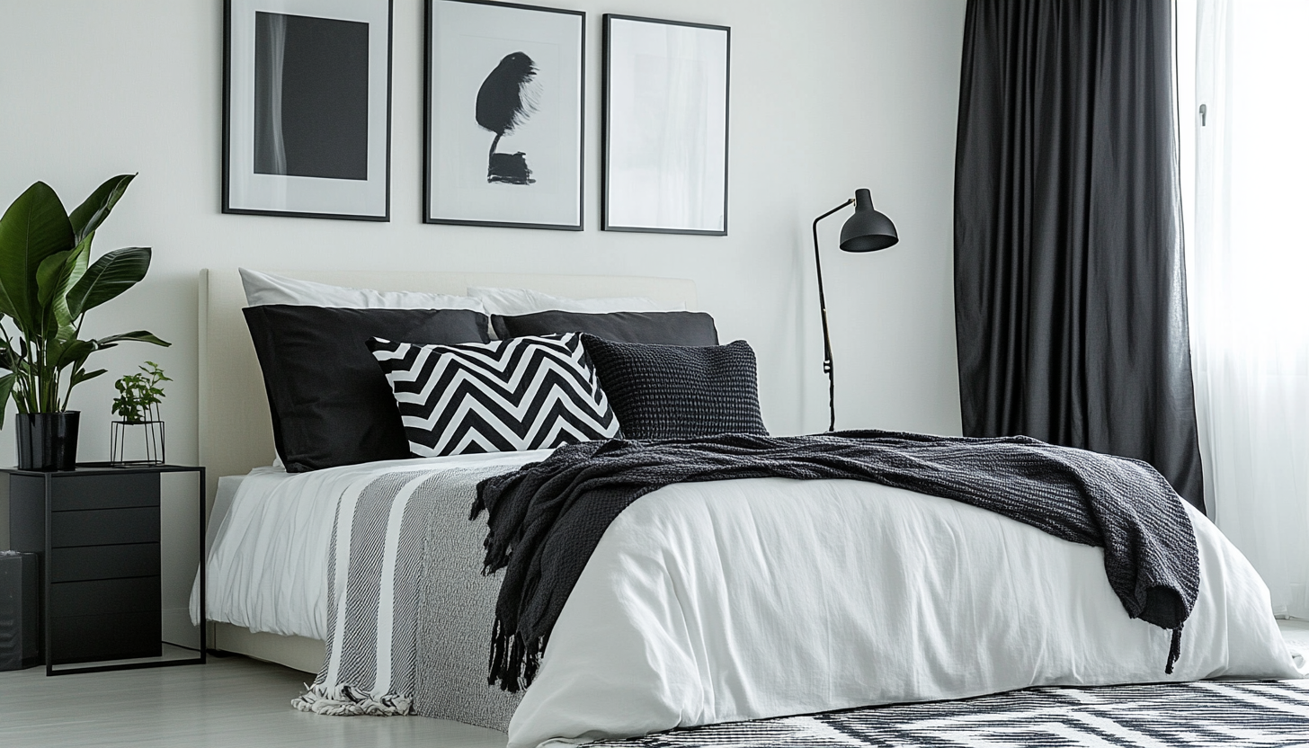 - Embrace the power of contrast by pairing bold black furniture with crisp white linens or vice versa.